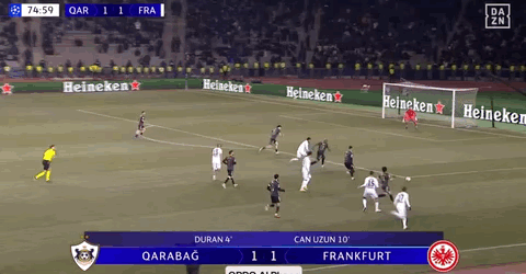 第4分鐘,先拔頭籌,卡米洛-杜蘭破門,卡拉巴赫1-0