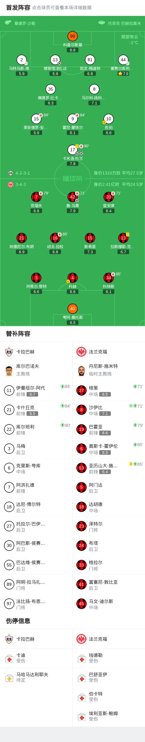 北京時間1月22日歐冠聯賽階段第7輪,卡拉巴赫主場對陣法蘭克福。上半場,卡米洛-杜蘭先拔頭籌,隨后烏尊破門扳平比分。下半場,沙伊比點射建功,卡米洛-杜蘭閃電扳平梅開二度。補時階段,穆斯塔法扎達讀秒破門完成絕殺。最終法蘭克福2-3遭卡拉巴赫讀秒絕殺被提前淘汰。