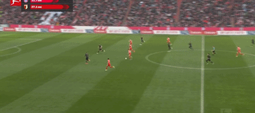 第29分鐘,拜仁前場4打3,迪亞斯把球停大了,隨后被達門化解