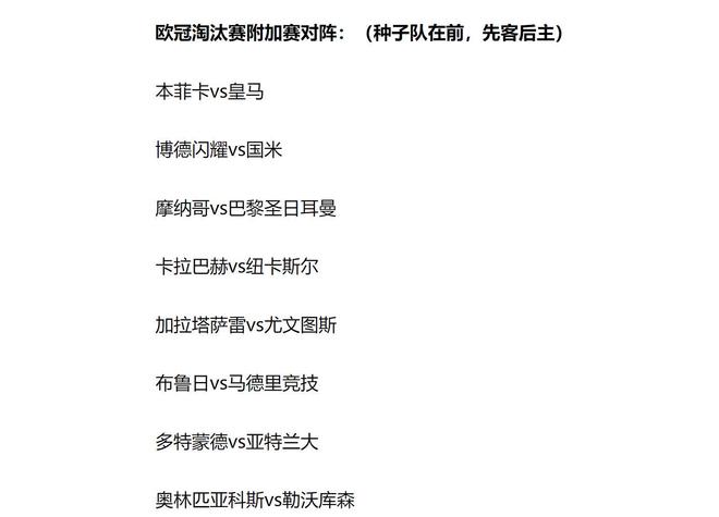 接下來(lái)的,淘汰賽附加賽比賽,時(shí)間為2月17日、18日,以及2月24日和2月25日。剛好是中國(guó)的農(nóng)歷春節(jié)期間,球迷可以在假期時(shí)間里享受歐冠比賽了。
