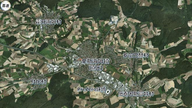 擁有德甲球隊(duì)的最小城市是巴登-符騰堡州萊茵-內(nèi)卡縣(Rhein-Neckar)的辛斯海姆鎮(zhèn)(Sinsheim),全鎮(zhèn)的居民是37036人,分住在鎮(zhèn)區(qū)和十二個(gè)村,得名于霍芬海姆村的霍芬海姆1899體操體育會(huì)(TSG 1899 Hoffenheim)將主場(chǎng)PreZero球場(chǎng)(容量約3萬人)設(shè)在鎮(zhèn)中心區(qū),距離霍芬海姆村約5公里,村民去鎮(zhèn)上看德甲比賽不用走太遠(yuǎn)。